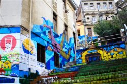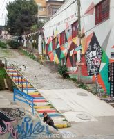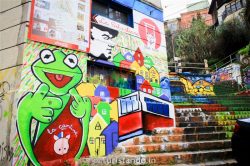 Você não precisa sofrer muito para achar alguma arte de rua em Valparaiso. Todo canto da cidade você encontra um pouco de arte de rua. A cidade foi feita em montanha e com isso, há muitas escadarias pela cidade. Não me lembro de nenhuma escadaria sem um pouco de arte em seus degraus. A maioria dos grafites abaixo fizemos circulando pela parte arte do bairro central (destacando o Monte Alegre)