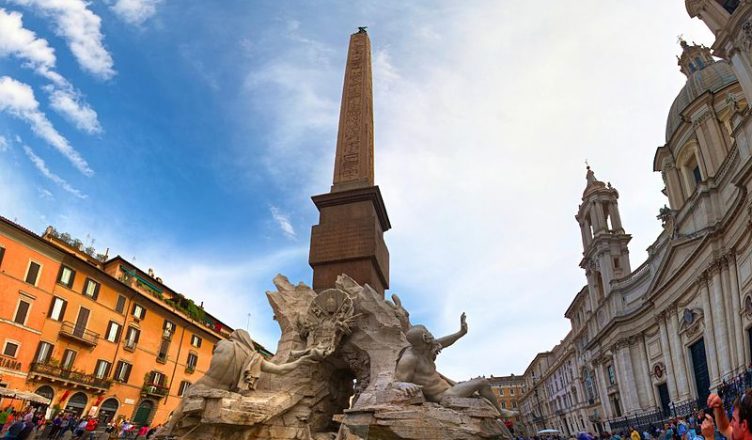 Apesar de termos 3 fontes nessa praça, a Fontana dei Quattro Fiumi é fácil de ser encontrada. Ela está bem no meio e abriga um dos obeliscos mais antigos da cidade (já fiz um post sobre os obeliscos antigos de Roma, sabia?).
