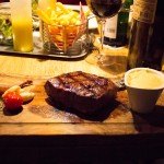 O Thi se acabou no grosso pedaço de carne. Eu confesso que não consegui comer toda metade da carne. Estava sim muito saborosa, mas muito al sangue para o meu paladar. O vinho chileno dele era bom, mas não tanto quanto o sul-africano.