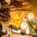 Assim que chegaram nossos pratos, chegaram juntos uma cestinha com fritas e outra com saladinha.