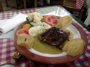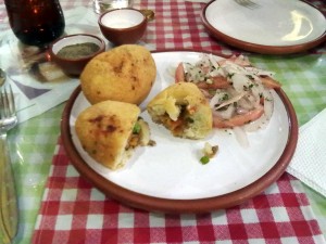 Fomos em um em frente à praça São Francisco (Calle Granada) chamado Emperador. Além do ótimo atendimento, comemos como antepasto um bolinho de batata com carne levemente picante e uma carne de alpaca deliciosa!