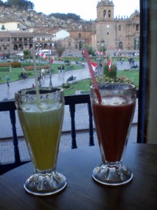 Eles fazem sucos de várias frutas e misturas! E ainda te proporcionam uma linda vista da Plaza de Armas.