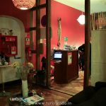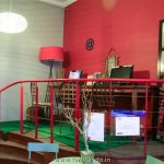 A recepção se encontra no primeiro andar do prédio. A porta de entrada se dá diretamente para uma escada, mas antes dela há uma portinha de entrada na lateral (sempre fechada) que dá para a sala do café da manhã.