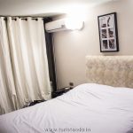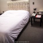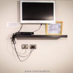 Ao lado das camas tem uma cômoda e luminárias. Não há armário, apenas um mancebo, além do aquecedor (que apanhamos para aprender a usar) e de uma TV com canais a cabo.