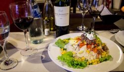 Cada um fez o seu pedido e eu e meu marido resolvemos pedir um entrecôte, a carne mais cara do cardápio (e a primeira que comeríamos na cidade) e uma salada do chef (uma mistura de vários vegetais, legumes e folha)
