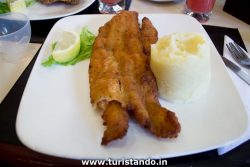 A entrada estava muito boa. Não fiz fotos (infelizmente), mas eram fatias de batata cozida, com presunto misturadas em um molho bem suave! O peixe estava muito bom, porém, o achei sem tempero, apenas com o tal molho criola, que me parecia vinagrete.