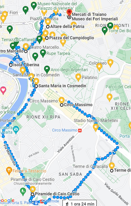 Tempo para esse roteiro: Se você pretende apenas passar por esses pontos, sem entrar no Coliseu e no Foro Romano, consegue fazer isso em meia jornada. Se você pretende entrar nesses dois pontos, pode conseguir fazer este roteiro em 1 dia.
