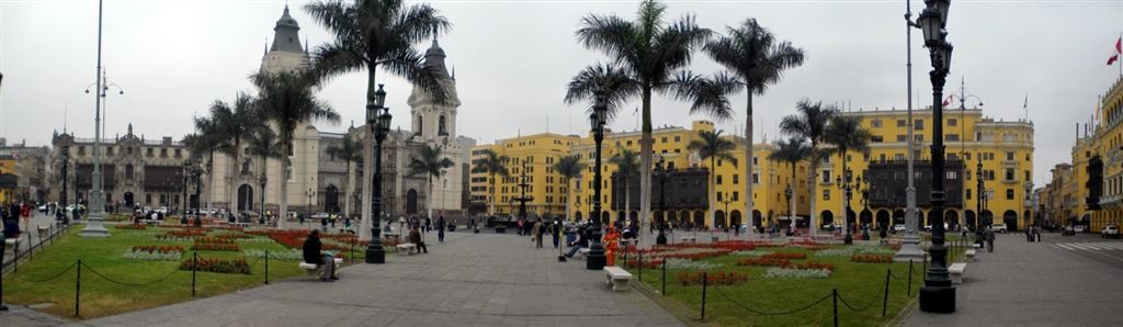 Centro: O centro de Lima é bonito, mas não tão conservado como os outros centros peruanos que visitamos; A praça principal do centro de Lima (Plaza de Armas, claro, mas também conhecida como plaza Mayor) está no coração do centro histórico e, do ponto de vista arquitetônico, uma beleza a parte; Em apenas um ponto, encontramos a catedral, o palácio do governo (conhecido como Palácio Presidencial ou antiga residência de Pizarro) e a prefeitura.