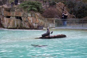 O bacana da alimentação é que os bichos saem em direção ao funcionário e ficam perto da gente e juntos. Na primeira vez, vimos apenas os hipopótamos; da segunda vez vimos a alimentação das focas (“Harbour seals” – muito bacana), mas para quem chega cedo, pode seguir o mapa conforme o almoço dos bichinhos.